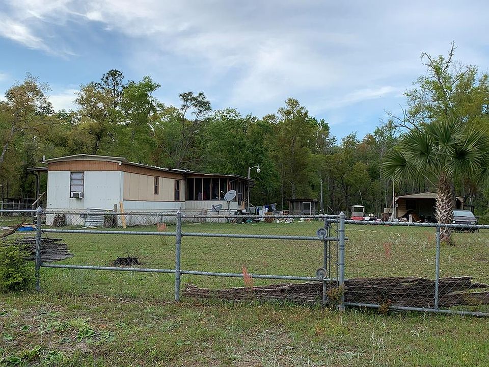 LOWEST PRICED PROPERTY ON THE MARKET! This 2 bedrooms 1 bath mobile home is comfortably situated inside a fenced 1/2 acre lot alongside the Brothers River. The exterior features make this property all you've dreamed of for a weekend getaway! Knock the sand off in the outdoor shower, visit and grill dinner under the open deck or from the screened porch. Keep the bugs away while cleaning the fish in the screened cleaning shed. Plenty of room to store boats, golf cart and more in the 20x12 workshop with 20x24 canopy with concrete pad. *Only the main exterior photo is current.