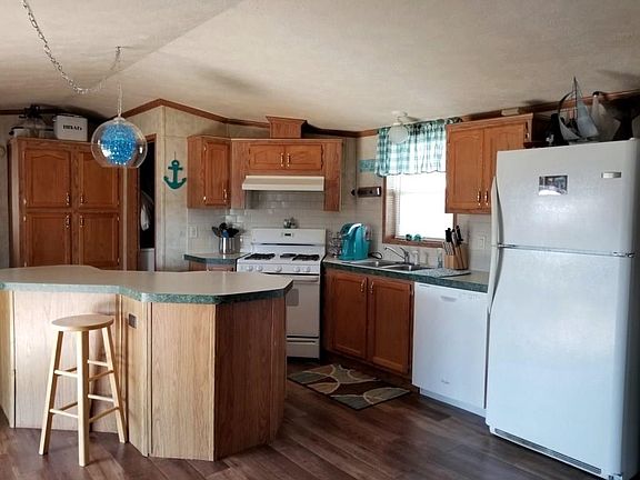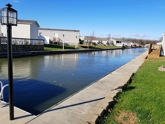 Very nice 2002 Fairmount 2 bedroom/2 bath home on channel with a covered deck & shed! You will love the location of this home! It is at the front of the park on the corner, so there is not another home to the South, only grass & open space. This home has a split design with bedrooms on opposite ends & new flooring throughout! The kitchen has a Subway tile back splash, an island & lots of cabinet space. The utility room off of the kitchen is a nice size and has shelving above washer & dryer. The master bedroom has a walk-in closet & the master bath is large with a garden tub & shower. Second bedroom has a bay window. Enjoy the warmth of the gas fireplace through the Winter & relax on your deck in the Summer! Walk out the sliding doors off your kitchen to the deck & right to the channel behind your home where you can dock your boat. Extra storage in the shed. TV mounts & Kegerator stay! There is a pool, sand volleyball court & picnic area at the back of the park for all to enjoy!