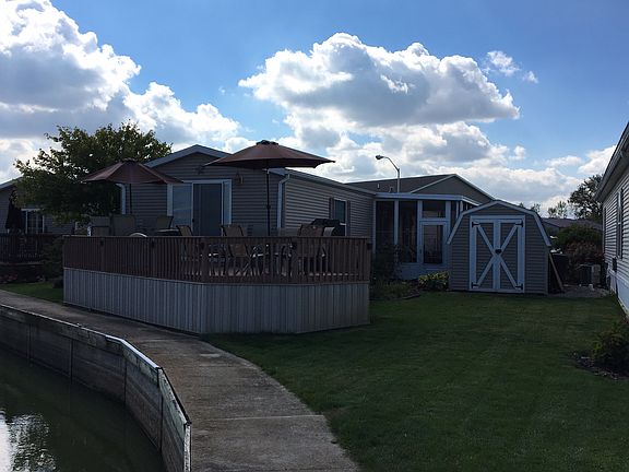Calling all lake lovers! This 2003 Fairmont mobile home is in like new condition! If you are looking for a year round home or weekender, and don't want to spend a fortune, this one is for you! Enjoy those summer evenings relaxing on your deck overlooking the channel or entertain your friends in the screened-in porch. Very open floor plan makes it great for entertaining. This home offers 2 bdrms with nice size closets. 2 full baths, laundry room with shelves, kitchen with an island, has lighting under the cabinets, family room with ceiling fan, double storage shed, 27'x9.5' screened-in porch with carpeting. The deck is 25'x13'. Professional landscaping with lights and fountain. Newer carpet in master bedroom and great room. 2 sets of sliding doors (one has blinds inside). PLEASE SEE SUPPLEMENT FOR MORE DETAILS.