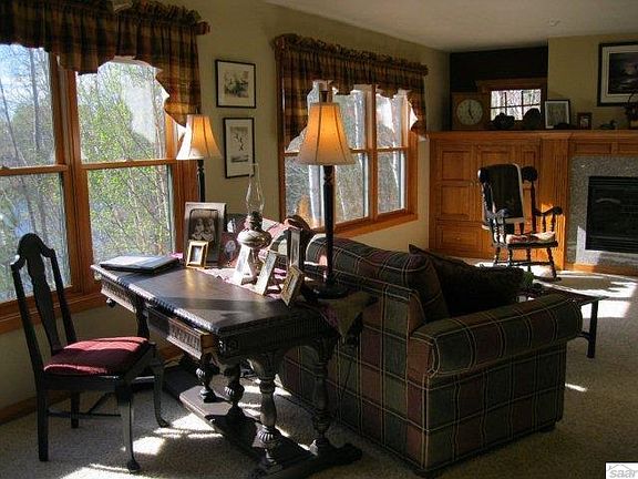Truly a Must See! The builder really had his thinking cap on when he built this home in 2004. The vista views from most rooms of the home are beautiful! Well cared for home, spacious rooms, skylights, custom oak built-ins, granite kitchen countertops and so much more. Landscaped, sand beach play area, easy access to lake, permanent dock and only steps from Cheq Nat'l Forest where the trophy bucks await you. Excellent lake for fishing and 2 doors from public boat launch. Very quiet and private setting yet only 2 miles to town. Huge bonus room off of master suite that is perfect for your favorite hobby. Multiple decks all armed with panoramic views. Schedule your showing today...