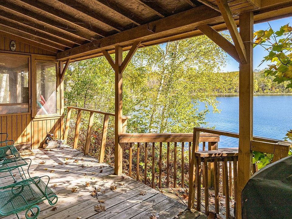 Turn-key short-term rental being offered fully furnished. Main level bedroom with a loft that sleeps two. Tranquil setting on 280 acre Long Lake just minutes from Iron River and its quaint trappings. Currently used seasonally, could be utilized year round. Low maintenance lot includes a bunkhouse that could sleep an additional 3-4. Fire pit, dock and raft stay with the property. Elevated southern exposure offers phenomenal views of the lake and surrounding properties. Great fishing and swimming in one of the clearest lakes in Bayfield County. Showings will need to be coordinated around guest stays.