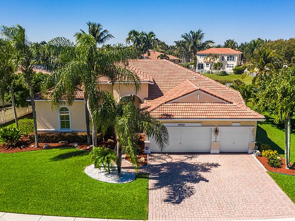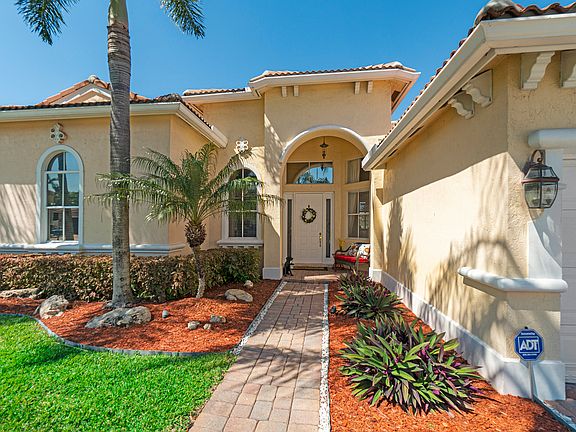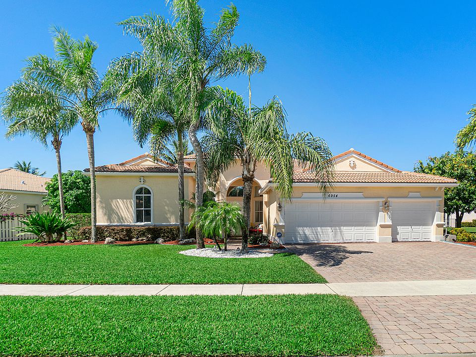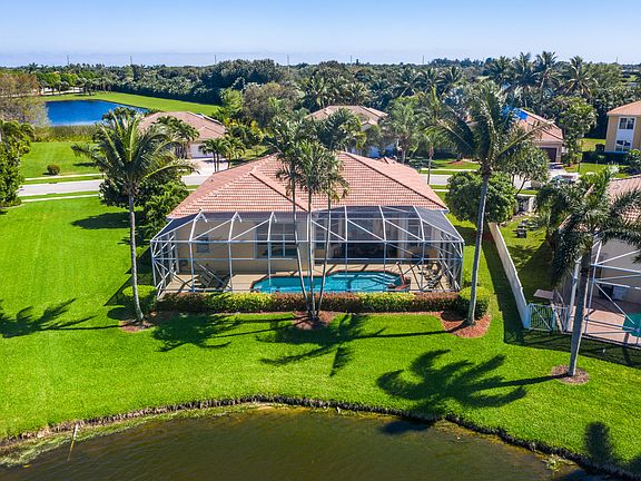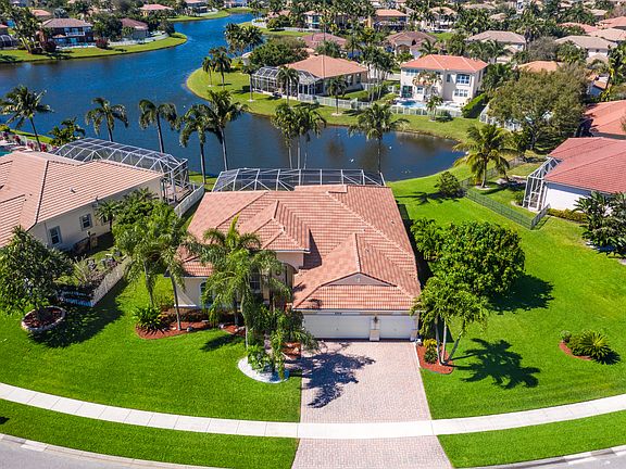 Stunning one story, 3 car-garage model on a beautiful lake with a heated pool! 2,800+ sq ft perfectly designed for entertaining with 5 bedrooms, 3 bathrooms open floor plan home. Beautiful 24'' marble floors laid on the diagonal. The foyer greets w/ 12 foot ceilings and grand marble inlay medallion. Formal living and dining rooms adjacent providing perfect entertaining flow. Fifth bedroom off the foyer makes the perfect room for a home office/den. Chef's island kitchen w/ white 42-inch cabinetry, roll-out drawers, granite countertops, wall oven and desk area. Custom lighting throughout the home. Master suite is a true retreat featuring a large sitting area, two large closets and spa-like bathroom w/ jetted tub and separate shower w/ frameless shower enclosure.