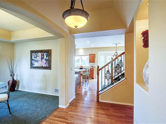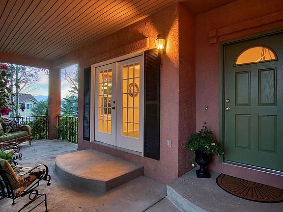 Stunning Stucco Home On Huge, Lush, Cul-De-Sac Lot~Wood Floors Thru Entry, Kitchen & Nook~Formal DR Has French Doors Onto Gracious Covered Front Porch~Large Open Island Kitchen~Nook Walks Out To Huge Composite View Deck~Great Rm W/Gas-Log FP~Expansive Vaulted Master Retreat & 5pc Spa Bath & Sitting Rm Featuring FP & Walkout To Expanded Covered Balcony~2 Extra BRs, Laundry & Full Bath Up~Fin Garden Lvl Bsmt has FR w/FP, BR & Full Bath~Mtn And Peak Views~3 Fireplaces~Lush, Mature Landscape. Conveniently Close To Everything! Impressive home on huge lot w/Mtn views. Upgrades incl central vac, sec sys, new water heater, decorative iron railings & fabulous outdoor living areas. Fireplace on each level. Wood floor Entry w/art niche. Formal DR has French doors out to lg covered front porch. Kitchen completely remodeled in 2019, incl. gas range, new cabinets, quartz countertops, new dishwasher. Interior completely repainted in 2020. Central air conditioning installed in 2020.