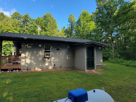 (125/KTG) Recreationalist dreams come true! Great location, just 7.5 Miles E of Winter. Care was taken in every aspect to make this home look and feel perfect in every way. Built in 2012 and consists of a 768 sq ft. home, which is set on a poured 4-foot foundation with garden shed for all your toys. Easy entrance to the crawl space from outside the home. House is vinyl sided with two covered porches, one which is screened for your enjoyment. This 2-bedroom, one bath home has Basswood throughout kitchen and living room areas and durable vinyl tile flooring throughout house. Mowed walking/ATV trails throughout this nicely wooded 5.28+/- acres a tower stand included for hunting or watch the wildlife. Parking area in the driveway is prepped for a 30X40 garage. The electricity outside is set up for a few campers and a septic dump for campers. Short distance from lakes, Tuscobia State Trail and public hunting land. Priced at $229,900
