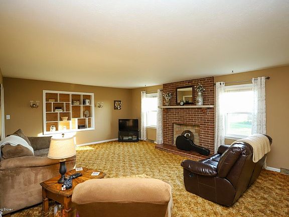 Fall in love with this all brick home that is centrally located, and nestled on an acre lot! As you enter the home you will find an oversized living room with a wood burning fireplace! The kitchen is open to the dining area that features a 2nd fireplace with built in bookcases. Other features of the home include hardwood flooring in the bedrooms, a breezeway with an electric wall heater, a full basement with the 3rd fireplace, a covered patio area, shed, workshop and mature trees. Schedule your viewing today!
