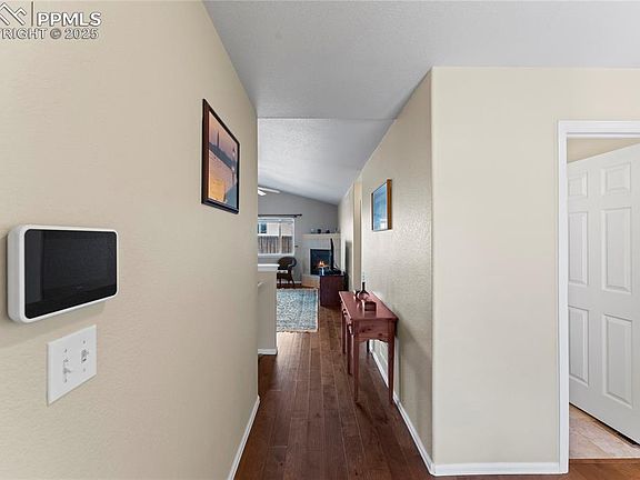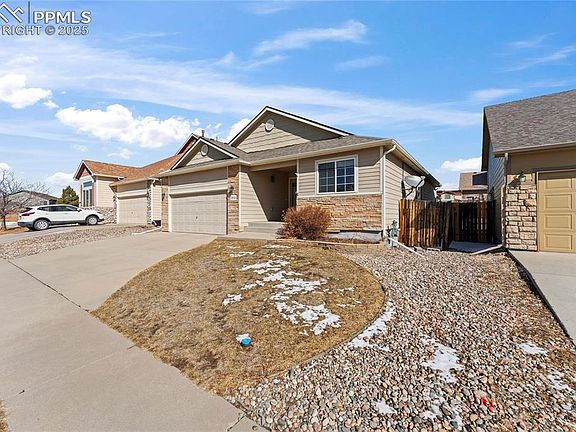 Welcome to this charming 4-bedroom, 3-bathroom ranch-style home with a 2-car garage, nestled in the highly sought-after Forest Meadows neighborhood of Colorado Springs. Built-in 2007, this 2,650-square-foot residence offers a perfect blend of comfort and modern living. As you approach, the inviting covered front porch perfect for your morning coffee. Step inside to discover an open-concept layout accentuated by vaulted ceilings and engineered hardwood floors that flow seamlessly throughout the main living areas. Large windows bathe the space in natural light, creating an airy and welcoming atmosphere. The living room, centered around a cozy gas fireplace, provides an ideal setting for relaxation and gatherings. Adjacent to the living area is a separate dining space featuring bay windows, perfect for hosting family dinners or entertaining guests. The well-appointed kitchen boasts granite countertops, stainless steel appliances, and elegant cabinetry and a spacious pantry offers ample storage. Retreat to the generous primary suite with an attached en-suite bathroom that includes dual vanities, providing both functionality and style. Two additional bedrooms, another full bathroom, and a dedicated laundry room with built-in cabinets complete the main level. The finished basement, newly carpeted, extends the living space, offering a spacious family room equipped with built-in speakers—ideal for movie nights or game days. A large bedroom with dual closets, a modern three-quarter bathroom, and two storage rooms provide versatility and ample storage solutions. Outside, the meticulously landscaped and fully fenced backyard invites you to enjoy Colorado's beautiful weather. Relax on the patio, perfect for outdoor dining. Don't miss the opportunity to make this delightful house your new home!