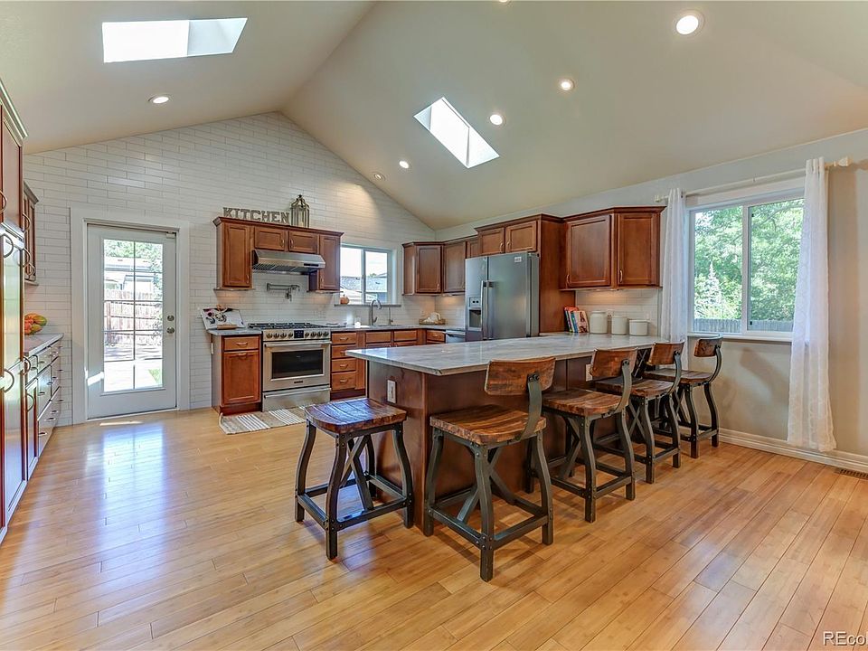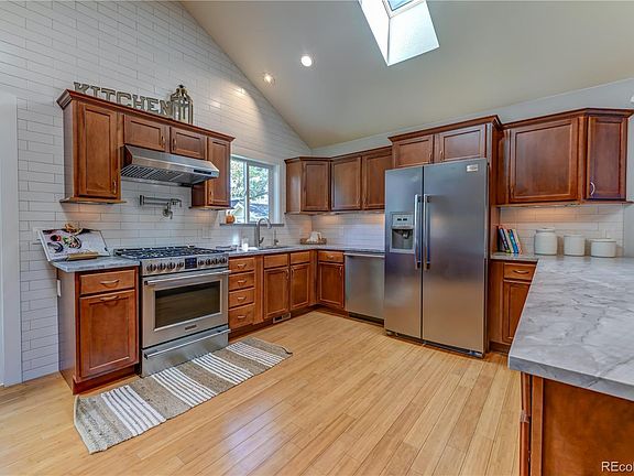 - Description: Kitchen With Updated Marble Countertops/Subway Tile Backsplash/Cabinets/Appliances/Pot Filler Sink/Skylights