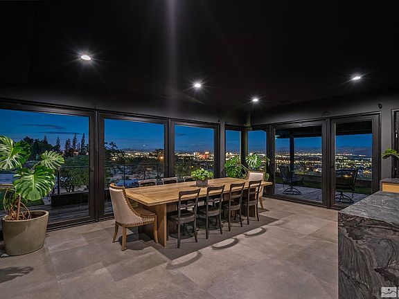 Nestled atop the scenic Windy Hill Way in Reno, NV, 6955 offers a luxurious sanctuary with unrivaled city views set on a sprawling 7.137 acres of land. This exquisite 4-bedroom, 4.5-bathroom single-family residence is a masterpiece of modern design and comfort, where every detail has been meticulously curated to offer an unparalleled living experience., Step through the new custom pivot doors and you are immediately greeted by the warmth of the boiler system, which extends to heated floors throughout the home, ensuring cozy comfort even on the chilliest days. The home boasts a new electrical system, including Ketra lighting and provisions for automated blinds, enhancing both the aesthetic and functionality of the space. The chef's dream kitchen is a symphony of quarter-sawn white oak cabinets, granite counters, and top-of-the-line appliances, including a 60” Thermador Professional range, Thermador refrigerator and 2 dishwashers. The butler's kitchen and custom pantry provide ample space for culinary adventures, while the grand 12’ waterfall granite island serves as the centerpiece for social gatherings. There is also a full Kitchen downstairs with a Fisher Paykel induction cooktop and oven and a 2nd built-in Thermador refrigerator. Each bathroom, from the powder room to the master en-suite, exudes elegance with Brizo fixtures, curbless porcelain showers, and sleek white oak vanities. The master suite itself is a private retreat, with custom pivot doors, a massive walk-in closet, and a 16-foot shower designed to pamper with multiple body sprayers and hand-held devices. From the steel floating staircase to the expansive windows and sliders that frame the breathtaking views, this home seamlessly blends indoor and outdoor living. With ample land to roam, 6955 Windy Hill Way is not just a residence—it's a statement of luxury and a rare opportunity for those who seek the best in life.