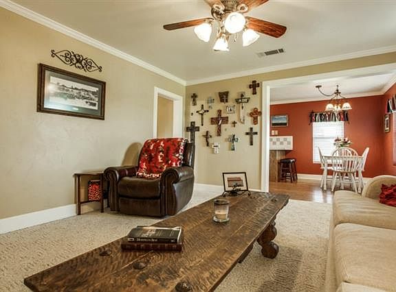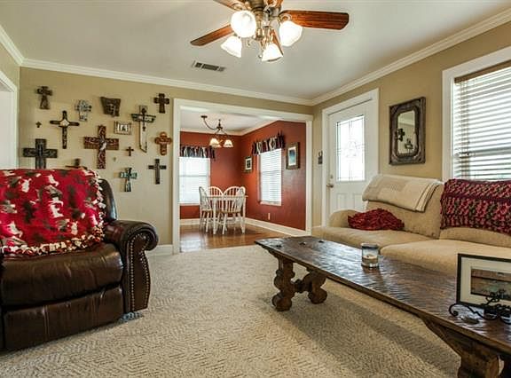 Don't miss this absolutely charming, move in ready, 3 bedroom 2 bath home on a full acre in the horse country of Aubrey. Updates include a completely remodeled guest bath, new double paned vinyl windows, custom blinds, and decorator paint colors. Master bedroom opens to it's own private wood deck. Carport is set up as outdoor living area, but metal gates swing open to allow coverage for your vehicle when needed.