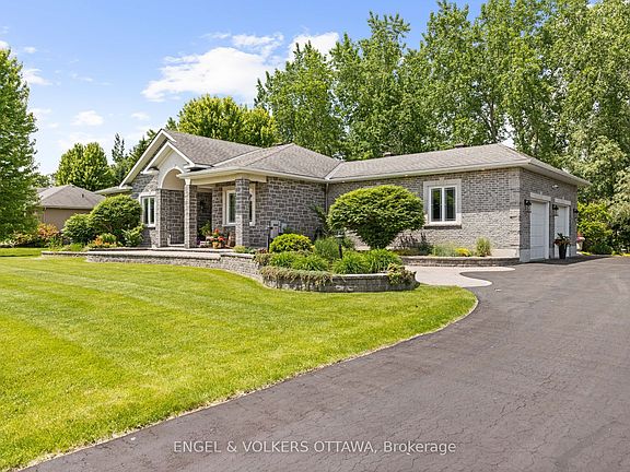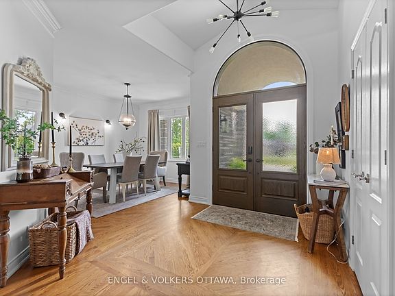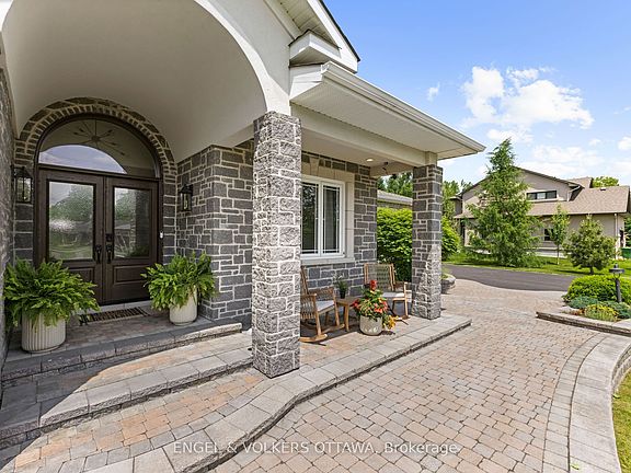 Surrounded by mature trees and lush gardens, this exceptionally maintained home offers tranquility and show stopping design. At the heart of the home is a beautiful chef's kitchen with a gas stove, a built-in wall oven, an abundance of cabinets with ceiling height cupboards, recently updated quartz countertops and backsplash, and an incredible walk-in pantry. Enjoy a beautifully bright, cozy living room with vaulted ceilings and a gas fireplace.The primary bedroom retreat is the true show stopper, the luxurious ensuite offers a double vanity with custom millwork, a stand-alone soaker tub, heated flooring, a beautifully tiled walk-in glass shower and a thoughtfully designed built-in closet space with a seating area. The basement has been thoughtfully designed to offer an additional bedroom, a den that is perfect as a home office or guest space - a wonderful family room with a cozy fireplace. A fantastic space to entertain, with a wet bar and plenty of room for a pool table. No detail has been overlooked in this beautiful residence with stunning upgrades throughout. Enjoy the outdoors in your spacious private backyard surrounded by greenery and no rear neighbours in sight! Exception lifestyle at South Village offers access to a residents-only swimmable lake with a dock, tennis and pickleball courts, heated inground pool, volleyball court, fitness center! With nearby parks and walking trails, this home offers a rare opportunity to enjoy nature while living in a prestigious neighborhood just 30 minutes from Downtown, 15 minutes from the Ottawa International airport, only moments to the Bowesville LRT station, and the future Hard Rock Hotel and Casino.