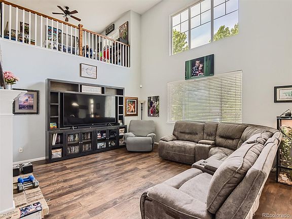 Welcome to the sought-after community at Tallyn's Reach, known for its pristine golf courses, beautiful mountain views, and endless parks and opportunities to explore the outdoors. This 5 bed, 4 bath home is ready to move in! Nestled on a corner lot, this home features an open floor plan, soaring ceilings, and beautiful natural sunlight that illuminates the entire home. The spacious family room boasts wood floors, large windows, and an ultra-cozy fireplace to gather around. As you gravitate toward the kitchen, you’ll love how large the space truly is, plus you’ll really appreciate the granite countertops, stainless steel appliances, counter space, and easy access to the backyard. Head upstairs to the 2nd floor where you’ll find the laundry room which includes an LG washer and dryer, plus a full bathroom with a double vanity sink, a primary suite with a 5-piece bath, two additional bedrooms, and a loft; providing privacy and comfort to work from your own home. The basement was finished in 2020 with permits. It features one bedroom, a living room/entertainment room, a large unfinished storage room, an extra storage closet, and one 3/4 bath with vinyl plank floors, a tile shower, new vanity, and plumbing fixtures. A wonderful, multi-use space to enjoy. In addition, the garage is insulated and finished with 10-foot ceilings and a service door that leads directly to the backyard. One of the gems of the home is the beautiful backyard with a covered patio and an additional slab for entertaining with lighting. The covered patio backs to an open space and faces west so you sit back, relax, and watch the one-of-a-kind Colorado sunsets. Walking distance to a library, school, fire and police station, quick access to 470, Aurora Reservoir, and DIA! Schedule your private tour today! Don't let this one get away!