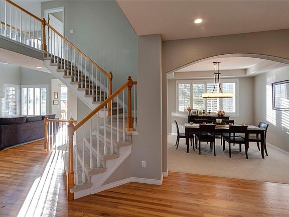 This beautiful home backing to Saddle Rock Golf Course is sure to please!! This popular floorplan offers formal living and dining room, family room with cozy fireplace and soaring two story ceiling! The kitchen boasts 42âEUR cabinet, tile counters, beautiful hardwood flooring. The gorgeous master suite offers an unique private deck that overlooks the lush backyard and golf course. The spacious 5-pc master bath with jetted tub, large walk-in closet, his and her vanities will be sure to pamper you! The meticulously landscaped, fenced yard will be a favorite summer gathering place! The full unfinished basement is ready for your finishing touches. Other features include: custom plantation shutters, newer roof, newer water heater, quiet cul-de-sac location and covered front porch. Close to DTC, DIA, Southlands Mall with easy access to e470. Buyers got cold feet, back on the market.