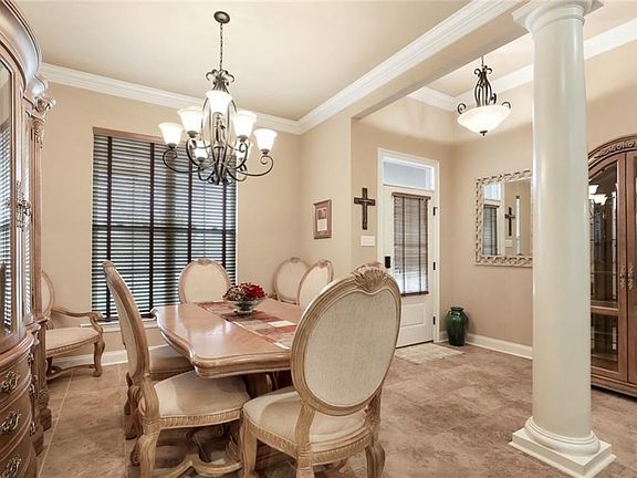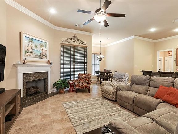 Classic French-cottage home w/elegant & impeccable interiors. Wide-open floor plan includes a large den w/cozy corner-set fireplace, formal dining w/oversized iron chandelier, chef's kitchen w/rustic tile backsplash, granite counters, ss appl, hi-top bfast bar & sunny eat-in nook. Primary suite features a separate office, trey ceilings, a glass shower + jetted tub. Entertain in the oversized backyard which includes a covered porch & large patio slab. Plenty of storage like a 2car garage. Low flood $572.