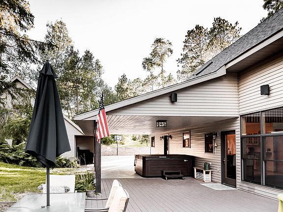 This 4k+ square foot, four-bedroom, four-bathroom home creates the perfect Minnesota indoor/outdoor lifestyle. Set behind a private driveway on a dead-end road, this cozy north wood home features panoramic views of Big Bass Lake. On almost two acres, this land provides seamless access to state land, bike trails, and massive entertainment deck overlooking the property and lake, multiple mature trees for privacy, and shaded patio. The interior boasts an open floor plan with an entire wall of windows and dramatic views of the lake, dining area, plus a floor to ceiling rock fireplace, vaulted great room, and wine cooler in the basement with a sauna. The luxurious owner's suite opens to a private deck viewing the towering pines located on the property and a resort-like bathroom with a soaking tub and walk-in closet. Three additional bedrooms and one detached en-suite guest unit with separate entrance. 2-car garage with space for additional parking.