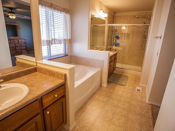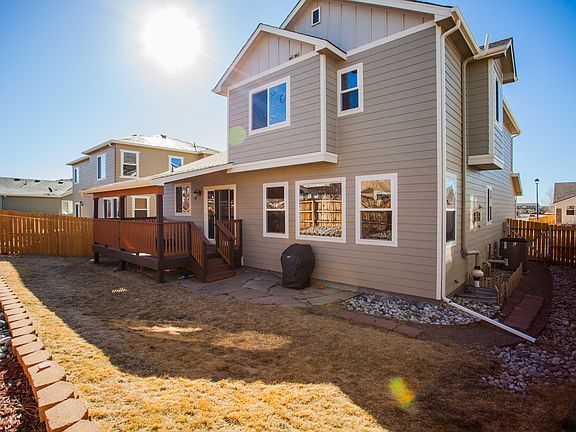 Located perfectly in North East Colorado Springs, this lovely 5 bedroom, 4 bath home is move in ready. This two story home has a full finished basement, complete with two bedrooms, one full bath and a very spacious family room. The kitchen is gorgeous with immaculate cabinetry, quartz counter tops, under mount sink, island and pantry. The master suite is large with the master bath featuring two single vanities. The backyard is landscaped with a huge trex deck.