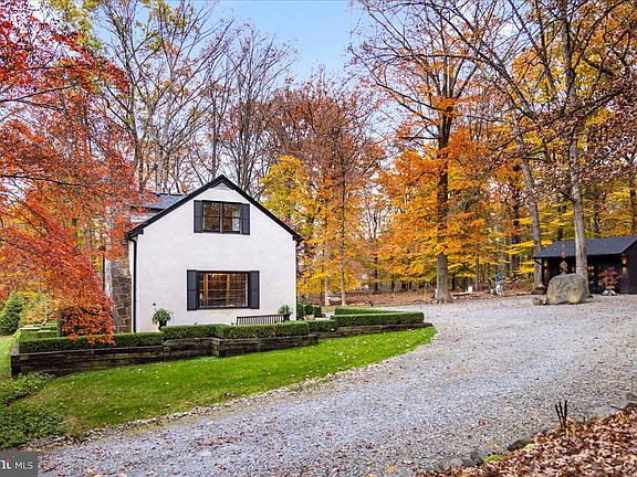 Perched on the outskirts of the charming town of New Hope, this property offers the perfect balance between seclusion and convenience. Just minutes away from the bustling borough, you'll enjoy the privilege of escaping to your private retreat without sacrificing accessibility to urban amenities. Nestled in the heart of almost 6 acres, the cottage stands as a testament to the transformative power of artistic vision. What was once a modest and weathered structure has been transformed through meticulous renovation by two international artists, weaving together their creativity and passion to breathe new life into this picturesque retreat. The enchanting 2-bedroom cottage, accompanied by a separate studio, creates a unique and versatile living space that seamlessly blends classic charm with modern convenience. As you approach the property via a long private driveway, a picturesque landscape welcomes you, adorned with lush greenery and mature trees.  Step inside, and you'll be greeted by a cozy living room, bathed in natural light streaming through carefully placed windows. The hardwood floors add a touch of rustic elegance, creating a warm ambiance that invites you to unwind and relax. The fireplace becomes the focal point, providing not just warmth but also a sense of nostalgia. The kitchen, the heart of any home, is a delightful mix of functionality and style. Modern appliances, including a Bertazzoni range, seamlessly integrate with vintage-inspired details, offering a space where culinary creativity flourishes. Adjacent to the kitchen is a charming dining area, perfect for intimate gatherings and shared meals. An adorable powder room with pocket door completes the main level. Upstairs the two bedrooms are retreats of comfort, each thoughtfully designed to provide a peaceful haven. Natural light floods through the windows, creating a serene atmosphere, while ample closet space and a spacious hall bath ensures that practicality meets aesthetics. As you step outside, a private garden oasis awaits, offering a tranquil escape from the hustle and bustle of everyday life. A patio area provides an ideal spot for al fresco dining or simply enjoying the beauty of the surroundings.  The meticulously landscaped grounds create a sense of seclusion, making it easy to forget that you're just moments away from the conveniences of city life. The real gem of this property lies in its separate studio, a versatile space that sparks the imagination. Whether utilized as a private office, an art studio, or a guest retreat, this standalone structure offers endless possibilities. It’s an independent sanctuary within the enchanting confines of the property.  If you are up for more than a leisurely stroll of your land, the nearby tow path offers opportunities for an invigorating walk or bike ride, and local artisanal shops and cafes provide a taste of the town's unique charm. Overall, this property appears to offer a perfect blend of natural beauty, artistic vision, and practical living spaces, making it an inviting and unique retreat for those seeking a balance between seclusion and community living.