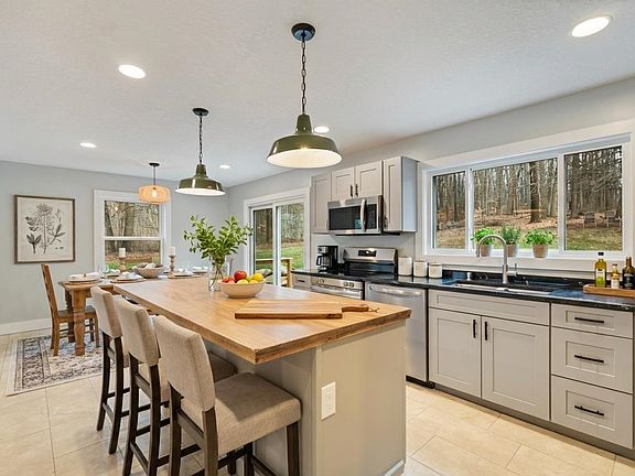 Experience lakeside living at its finest with this completely renovated two-story home, located just across the street from Lake Tippecanoe. Set on 1.82 partially wooded acres, this property offers the perfect combination of privacy, nature, and recreation. Taken down to the studs and rebuilt, including all new wiring and insulation in walls and ceilings in both house and the garage, this 3-bedroom, 2.5-bath home features modern finishes and quality craftsmanship throughout. The open and airy floor plan includes a brand-new kitchen with updated appliances, sleek and modern baths, and fresh paint and flooring. The main level offers a convenient laundry room and spacious living areas designed for everyday comfort and entertaining. Step outside to enjoy the beauty of the surroundings—walk the Oppenheim Woods trails directly from your property or spend the afternoon golfing at the nearby Tippecanoe Lake Country Club. The large lot provides ample space for outdoor gatherings, and the full unfinished basement offers endless potential for additional living space or storage. Peaceful, private, and move-in ready—this beautifully renewed home blends modern living with the natural charm of the Lake Tippecanoe area. ***Some Photos May Be Virtually Staged