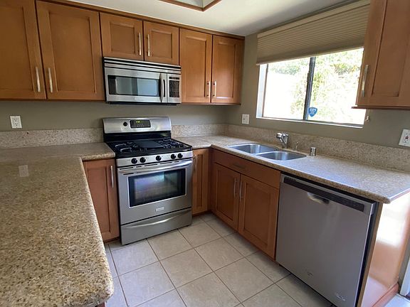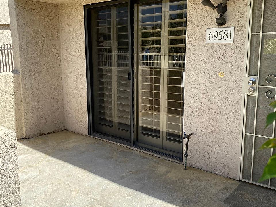 Fabulous end unit, in gated community, all remodeled with GRANITE SLAB counters thru out, newer s/s appliances, bathroom fixtures, & newer cabinets thru out, NEWER carpeting, ceramic tiled floors, security screen door, lighting fixtures, paint and replaced A/C coil, NEW Furnace, & newer water heater too, ceiling fans, re-plastered private spa, stack washer & dryer inside & magnificent San Jacinito views! Bathrooms both redone with vessel sink & added double sink to master w/ TOTO toilet too. Next to community heated spa, pool, tennis court and club house. Two car garage with lots of storage space and new garage door opener. LOW HOA $318 per month. New desert landscape with drought-resistant plantings currently being installed in community and NEW ROOFS. All roads within community have been repaved. Tennis courts too! NO age restriction either.
