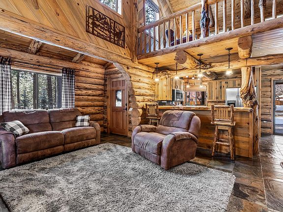 Stunning Sisters, OR log home located in the desirable Tollgate neighborhood. Open floorplan with vaulted ceilings and great natural light. The kitchen features granite tiled counters, blue pine cabinets, bar seating and stainless appliances. The large master suite features a tiled shower, walk in closets and balcony deck pre-wired for a hot tub. The spacious and bright loft is perfect for relaxing. Enjoy outdoor living on the manicured .64 acre property that features a covered deck, large paver patio, garden with a greenhouse and in-ground sprinklers. The property backs up to open common area with National Forest only a few steps away. Attached single car garage and the detached shop provide plenty of room for your vehicles and toys. Matching log bunkhouse for your guests or could make a great private office. Newer heat pump with central A/C and an efficient wood stove. This home has been meticulously maintained and upgraded, a must see!