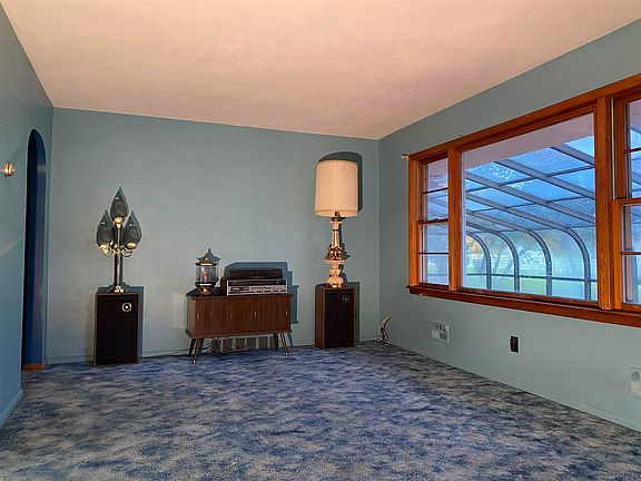 GREAT LOCATION! Situated on just over an acre with a half circular drive for your convenience. The property backs up to a wooded area for some backyard privacy. Enjoy the attached solarium in the front of house with your morning beverage, this space would be perfect for the green thumb buyer! This home features two bedrooms (possibly 3) and one bath with an eat-in kitchen. This home also has a full basement and can be easily converted to more useable living space like a rec room and/or bedroom space. Put your finishing touch on it and make it your own. Property going AS-IS.
