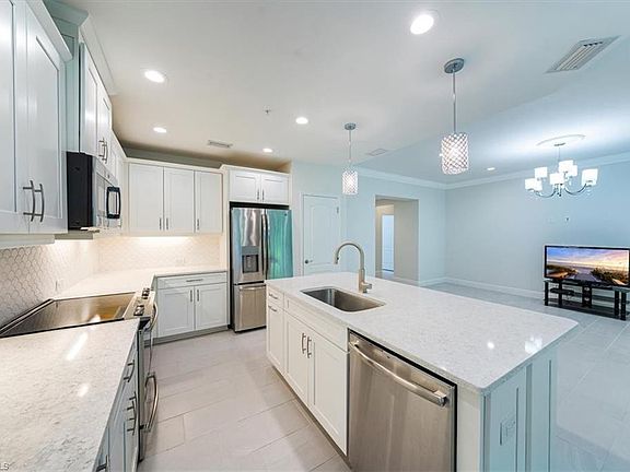 C10978 New, clean, crisp, quiet, and only 10-15 minutes from Naples downtown and the beaches. You will fall in love with this beautiful first floor unit in newly constructed Avalon of Naples. The updates include crown molding, IMPACT windows, stunning modern chandeliers and the owners upgraded bedroom floors to feature durable wood-look porcelain tile; no carpet anywhere in this unit. For your convenience, this condo features an attached one-car garage, and a modern kitchen with pantry and stainless appliances, open floor plan and volume ceilings. The view from your large screened-in lanai is cozy and private. The HOA/condo fees are very reasonable and include lawn maintenance, irrigation water, basic cable, WiFi AND water! Avalon of Naples is centrally located close to downtown, dining, shopping, I-75 and Naples famous beaches. Avalon of Naples features a community pool, jacuzzi and welcoming clubhouse with community kitchen where residents meet for happy hour,s BBQ's and potluck dinners.
