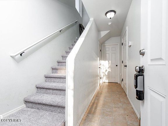 Convenient access to campbell creek trail system for year-round hiking/biking activities.Just around the corner from Taku Elementary, this town home with low dues, offers open concept living/ Kitchen area w/island,SS appliances, Vaulted ceiling & large windows.The floor plan is 2Bed one Bathroom up with Master and one Bedroom and Bathroom down, New flooring installed12/5/2023. Stay warm...and dry this winter with a 2 car garage don't miss out !!