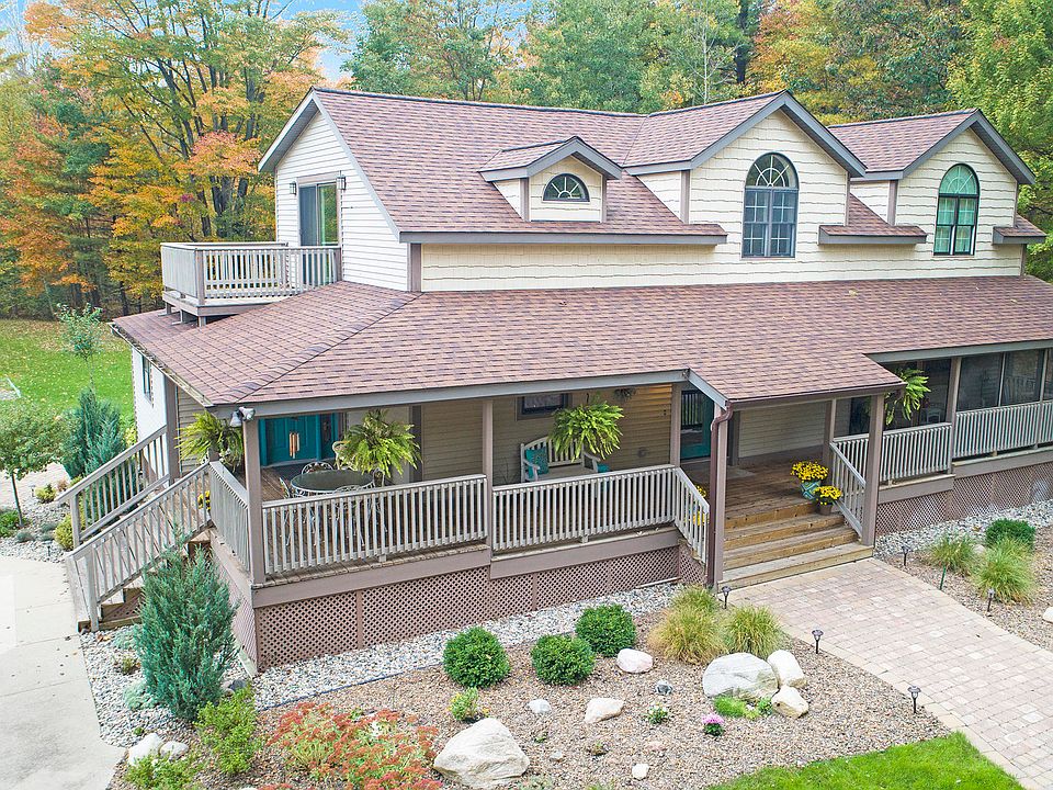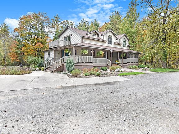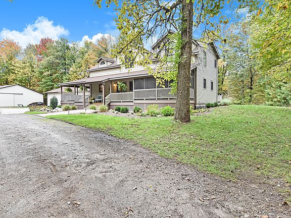 Welcome to 6959 E. Farr Road. This gorgeous home sits on almost 20 acres in the Fruitport school district. The main house features 3 bedrooms and 2 full baths with an extra pole guest house with an additional bedroom, bath, laundry, and living space great for long term or weekend guests. In addition to the bonus living quarters, there is also one oversized garage as well as two standard garages and a loft for storage. The beautiful screened porch on the front of the home is a great place to sit and enjoy your morning coffee. Inside the main house the main floor living features a formal living room, kitchen, dining room, and family room as well as a main floor laundry room/full bath combo. Upstairs, the master bedroom shares the master bath with two other bedrooms. A 48 x 56 pole barn with a loft is also located on the property and serves as a great storage/utility space. The sprawling acreage of the property features plenty of room to roam on your ATV or just wander while exploring.