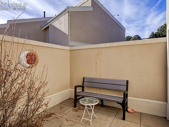 Private end-unit in Woodman Manor! Two patios and two balconies allow you to enjoy the fresh air, sunshine and nature. Enter into the spacious living room that is flooded with natural light and features a wood burning fireplace. The eat-in kitchen is adjacent to the dining room which walks out to the rear patio. Large master bedroom features its own balcony, adjoining bath, large walkin closet and a bonus atic storage area. Bedroom two also features a walkout to its own balcony. Laundry is conveniently located on the upper level (washer/ dryer included). Great location! Close to shoping, dining, entertainment with easy access to I-25 and Academy.