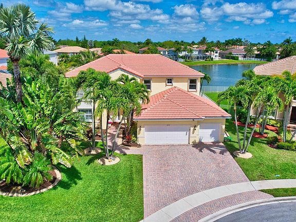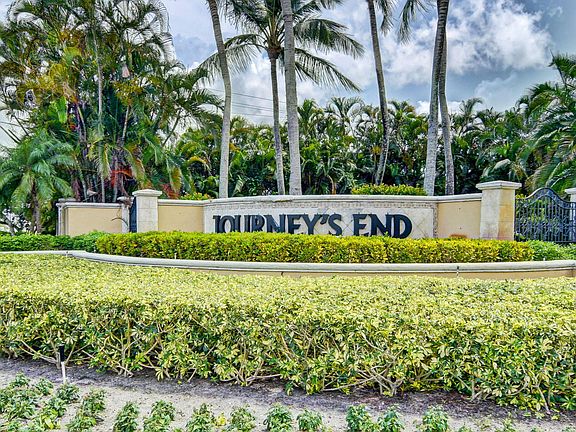 Welcome to luxurious living in the gated community of Journey's End. This meticulously maintained 5-bedroom, 3-full bath residence nestled on a tranquil cul-de-sac with wide lake views is a stunning example of south Florida coastal comfort and style. Recently completed interior and exterior paint enhances the property's bright and airy appeal, while a three-car garage with built in wall and overhead storage adds convenience. Inside, two remodeled bathrooms showcase modern elegance, and the entire interior boasts newer light fixtures including a grand entryway chandelier. Revel in the beauty of recently remodeled wood and iron stair railings and newly installed Mohawk Revwood premium laminated flooring throughout the entire second floor. Practical features include newer hurricane shutters on all windows, a new 50-gallon electric water heater, 2-zone air conditioning, five-year new LG kitchen appliances, and new APP controlled lawn sprinkler system and pump. Luxury features include an enormous granite kitchen island, built in cabinets in family room with granite top, wired for premium Surround Sound with Atmos height speakers, newer double roller shades and plantation shutters. Enjoy the serene lake view from your backyard oasis featuring a pool/spa complemented by a newer pool pump and heater, custom stone outdoor kitchen with modern concrete top, built in LED illuminated grille, Green Egg bbq, power retractable awning, and Polk audio outdoor speakers. Quiet southern charm amongst mango, lychee, and lemon trees can be yours!