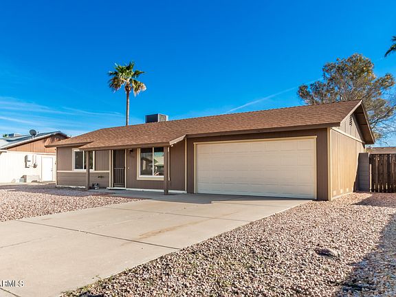 Come see this charming 2-bed, 1.5-bath home ready to move in! Step inside to open concept living, recently painted interior and recessed lighting. Enjoy the family room with a brick fireplace for chilly nights and sliding door that opens up to a spacious backyard. Recently remodeled kitchen, with granite counters, ample white cabinetry and stainless-steel appliances. Both bedrooms are good-sized, and the primary bedroom has an ensuite bathroom. New HVAC 2022. Walk out to the low maintenance backyard offering a covered patio & attached storage unit! With your creative ideas, you can make it a perfect outdoor living space. Close to Westgate and State Farm Stadium, Glendale Community College, parks, shopping, dining, entertainment, and the highway. NO HOA! You don't want to miss this gem!