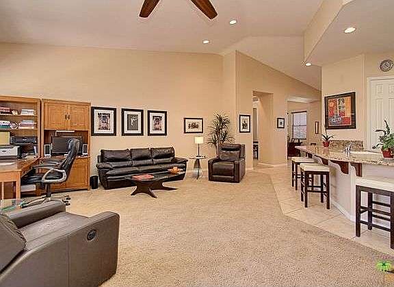 This 1,931 sq. ft. remarkable home is perfect because it can meet the needs of any buyer. It''s spacious, open floor plan is perfect for entertaining or for a growing family. There are three bedrooms and each bedroom is large enough to accommodate a king size bed and there are three full size bathrooms so that there is never an excuse for being late to any event. The large kitchen has a breakfast bar that can seat four people comfortably. The kitchen opens up and flows beautifully into the spacious great room. There are high vaulted ceilings and nine foot door ways into all rooms. The lot is almost 10,000 sq. ft. and is large enough for a full size pool and spa. The landscaping is full and bursting with color. All that is missing is YOU.