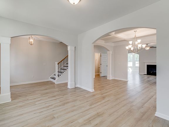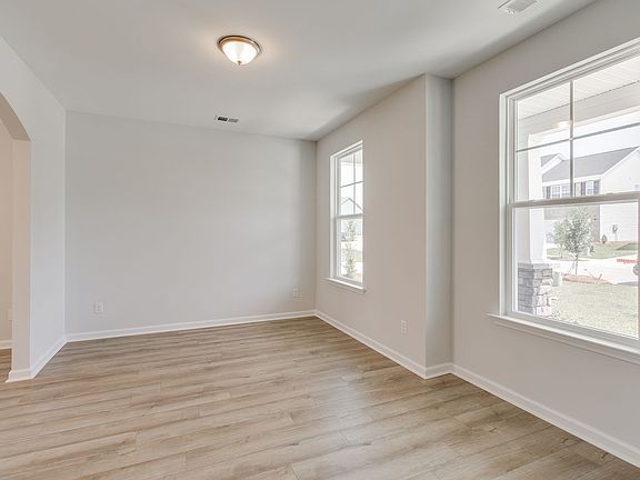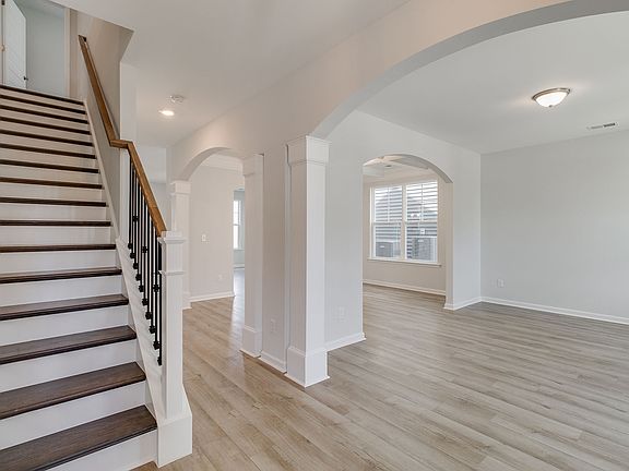 The Roland is the same floorplan as our model home and hosts four bedrooms and three and one-half bathrooms. Walk into your entryway to see a home office and from there a formal dining room on your right. The formal dining room hosts a beautiful coffered ceiling. Head to your great room to find a gas fireplace. The great room is open to the eat-in and kitchen that holds a large island leaving you with plenty of room for cooking and entertaining at the same time! The kitchen includes a single sink and a gas stove. Head up your hardwood stairs to find three secondary bedrooms, two shared bathrooms, and a bonus room. Walk into your large primary suite with a tray ceiling, a LARGE sitting area, a private bathroom with separate sinks, a tiled separate tub and shower, and separate closets. Outside you'll find full yard irrigation!