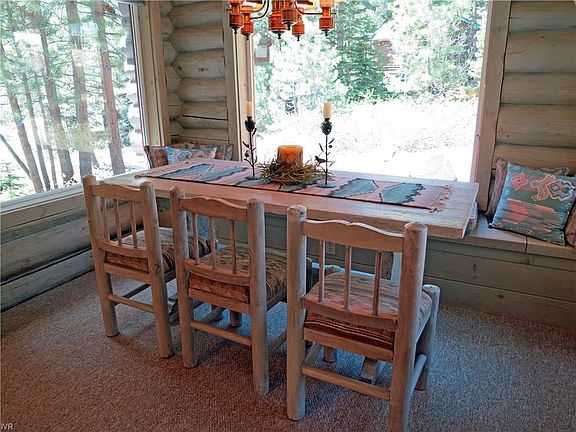 Elegant western style log home custom built & expanded w/meticulous attention to detailing in construction & finishes. This outstanding residence has easy access, end of cul-de-sac location & is bordered by FS lots on 3 sides, providing a beautiful mountain setting enhanced by privacy. The 2-level floor plan is flexible, offering several areas for multiple uses. In addition to the classic log home details, this amazing property boasts fine finishes like custom lighting, custom stone & tile work, spectacular wood carvings & several recent upgrades. High, vaulted & wood-beamed ceilings, along w/creative placement of numerous windows fill the home w/light & give a wonderful volume to the numerous comfortable spaces. The fabulous inviting guest suite offers an entertainment bar, an extra sleeping loft, a luxury bath & a large south-facing deck. This home offers the convenience of a heated driveway & entry stairs, 3-car garage + easy access to the Mt. Rose highway & all community amenities.