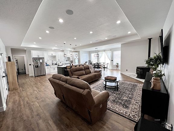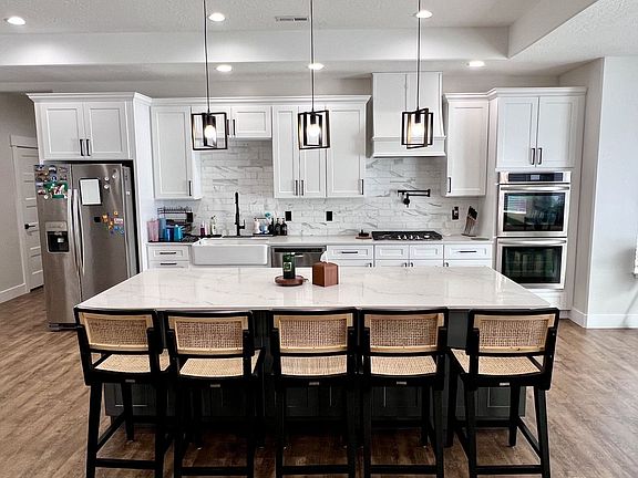 *This Beautiful 6 bedroom, 3.5 bath home has over $57,000 in upgrades. From the custom kitchen, with an oversized island, quartz countertops, tile backsplash, white porcelain farmhouse sink, sloped oven hood, stove top pot filler, soft close cabinets and drawers, tile floors in the kitchen, laundry and baths, coffered ceiling, central air, all stainless-steel appliances including microwave, dishwasher, gas cooktop, double wall oven, and refrigerator, to name a few. The living room has a pellet stove on a 5' tile pad. The large master bath and jack and jill bath have heated floors. The 3-car garage is insulated with a man door. The laundry room has an extra deep utility sink. See MLS Associated Docs for a List of Final Upgrades.