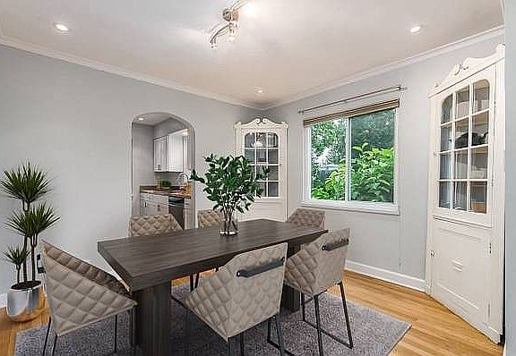 This beautiful 1300 sq ft. 3 bedroom 1 ½ bath Clintonville home has gone through a modern upgrade! You’ll enjoy more openness to the living room and dining room with a removed wall, updated woodwork throughout 1st floor with all original & refinished wood floors, crown molding, updated white 6-panel doors, new gas stove, dishwasher, stainless steel refrigerator, bathroom updates, new paint throughout the entire house, recessed lighting in the kitchen, dining room, and living room. The fully finished upstairs includes a bedroom, half bath, den and two closets with brand new carpet. The full size basement includes freshly painted floors with a mud sink and washer/dryer hookup. The third of acre of land has a 6 foot privacy fence that surrounds the backyard, a massive 34' x 18' brick paver patio to accommodate all your entertaining needs, a complete professionally designed and landscaped front for awesome curb appeal. A single car detached garage is also included. All brand new energy star windows (2018)have been replaced along with a new gas furnace/central air (2019) and new shingle roof (2019).