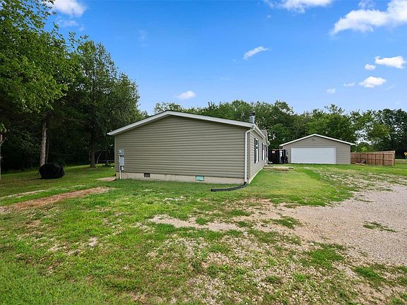 As you walk in the home you will see a large living room with a nice fireplace. The master suite is off of the living room, that has a walk in closet and a jacuzzi tub in the master bath. On the opposite side of the home you will see the other two bed rooms and full bath. The home has a semi open floor plan, walking through the living room into the dining room leading to the kitchen. Off of the kitchen is the laundry with access to backyard. Out back you will see most of the 3 acres with plenty of room for activities. There is also a 2car detached garage with concrete floor