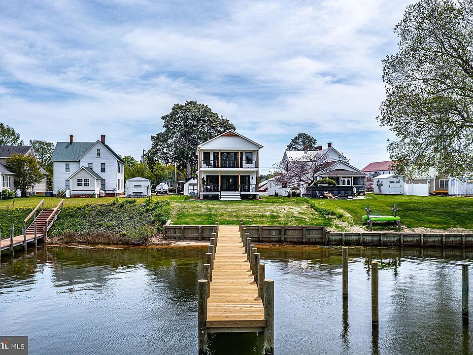 A truly unique opportunity to own a fantastic new home on Main Street in the heart of Reedville. The attributes of this newly built house blend gracefully with the historical style homes on the street. Outside features include board and batten siding, black framed windows, composite decking and beautiful cedar columns and custom built cedar pediments in the roof gables. There are two 8' x 24' covered porches (upper and lower) along the entire width of the home giving remarkable water views. A 12 x 16 shed will provide all the storage you need. The property includes a newly constructed bulkhead and an 80’ dock just waiting for your boat. In the interior, the open concept first floor great room looks over the water and opens to the lower level porch. There are two master bedroom suites, each beautifully tiled with a double vanity and walk-in closets. One MBR is on the first floor, and the other on the second floor. The one on the second floor spans the entire width of the house with doors opening onto the huge upper level huge porch overlooking Cockrell Creek. All three bedrooms have a full bath, so no sharing of bathrooms. Other interior features include 9' ceilings, upscale LVP maintenance free flooring, kitchen bar, quartz countertops, and under cabinet lighting. Due to the lot being grandfathered, the home was built just 50' away from the water. The views are breathtaking.