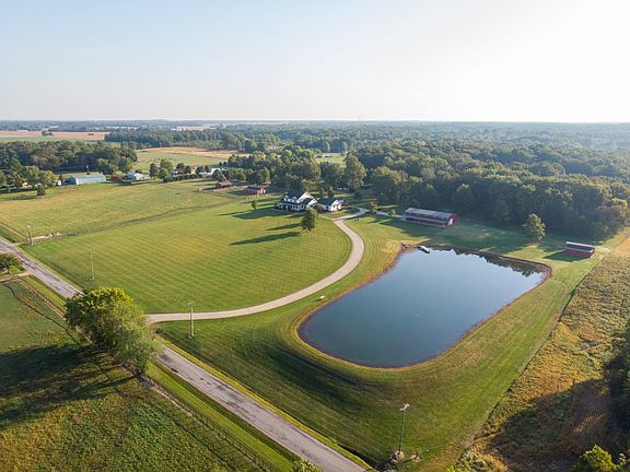 This custom 7200 sf home has 5 bedrooms and 4.5 baths and sits on 15 acres made up of fenced pasture for horses or cattle, a small livestock barn, a huge pole barn with and 1.5 acre pond! You can enjoy the best of the outdoors with your in ground swimming pool, custom patio, and pool house. This home boasts so many wonderful features! The gourmet kitchen has built in appliances, a huge eating space and more custom cabinetry than you ll ever fill. The main level features a large living room, dining room, and formal living room. The main floor master is more of a retreat, with a beautiful garden tub and his and her vanities. The upper floor has a loft/game area and writing nook, plus 3 generous sized bedrooms. The basement is a walk out level with a custom stone fireplace, an additional bedroom and game area. There is also a very large storage area. This is all ready for you right outside the city limits! Call us for your private tour!