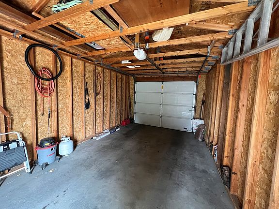 Detached Garage/Shed (16X24ft); concrete floor, electric garage door opener, metal roof, non insulated, power. Covered wood storage is built off the backside of the building.