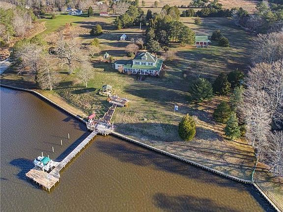 Sited high above the wonderfully deep and pristine Piankatank River is Pipe-in-Tree circa 1893. This fabulous late Victorian era farmhouse offers endless views of the Piankatank River in every direction and has retained all of the elements one would expect to find in well built property from this era including a breathtaking walnut staircase that must be seen to be appreciated, pine floors, wide / long outdoor porches and multiple dependencies. Possessing an astounding and intriguing provenance, this property has witnessed important historic events throughout its history as well as hosted iconic celebrations and gatherings. Property amenities include a three-bay carriage house/garage, bunk house, garden cottage, herb gardens, cedar lined drive, circular driveway, tidal pond, 500' of waterfrontage, new lifetime bulkhead, pier/dock with power, water and outdoor lighting, boat lift, and magazine worthy outdoor dining and entertaining areas. Convenient to Urbanna, Irvington, Gloucester and all that the area has to offer. World class wineries, golf, marinas, shopping and charming historic waterfront towns that the area is known for.