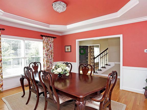 Stanback quality-built home on a cul-de-sac w/a tree lined private backyard & double tier deck, firepit area & raised garden beds. Home has 9ft ceilings, crown molding, professionally painted & hardwood flooring throughout 1st floor. Large formal DR w/tray ceiling & wainscoting open to updated kitchen w/granite countertops, tiled backsplash & newer stainless appliances. Breakfast room offers 7 windows w/custom shades & views of the backyard. Spacious family room open from kitchen & breakfast area w/fireplace trimmed in dental molding & opens to a spacious deck for entertaining & dinners with a view. Bedrooms on 2nd level are spaciously sized! Master suite w/whirlpool tub, separate shower, cathedral ceiling & 17 ft walk in closet & access to large storage space. Custom designed basement by Andover Construction offers media area & custom bar complete w/bar seating, mini fridge/wine cooler & rack plus cabinets. Large full bath & play area & a large storage room.