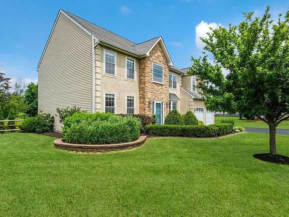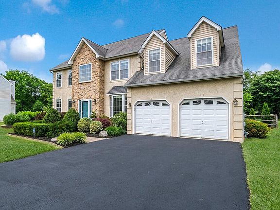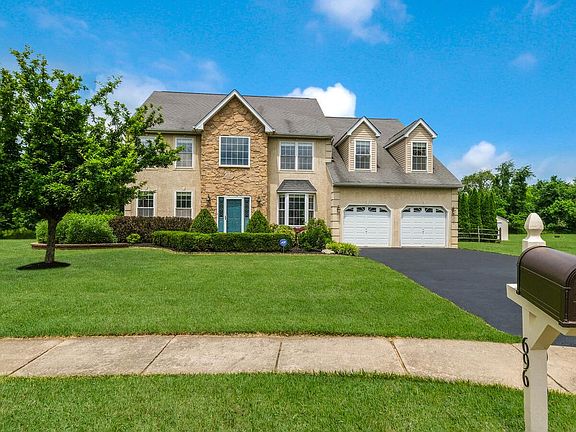 Stunning partial stone front 4 BR, 2 full bath, 2 half bath Center Hall Colonial situated on a cul-de-sac street! Professionally landscaped paver walkway. Formal, 2-story entry with chair rail & picture molding & glistening hardwood floors that continue throughout the first level. Formal Living room with chair rail, crown molding & recessed lighting opens to an Office/Study with French doors. Formal Dining room with crown molding, chair rail with picture molding & large bay window overlooking front yard. Large Eat-in Kitchen with 42 maple cabinetry, center island/breakfast bar, granite countertops, custom ceramic tile backsplash, recessed lighting, double stainless-steel sink & stainless-steel appliances including gas range, built-in microwave & dishwasher. Breakfast room with sliding glass door to rear patio & yard. Half wall with columns from Breakfast room to Family room with ceiling fan, recessed lighting, fireplace & cathedral ceiling. The first floor also offers a powder room & Laundry room with built-in cabinetry & ceramic tile floor with a door leading to the rear patio. Turned staircase leads from Foyer to 2nd level. Huge Master Bedroom Suite with double door entry offers wall-to-wall carpeting, recessed lighting, sitting area, spacious walk-in closet with built-in shelving & full Master Bath with ceramic tile floor, double vanity with granite countertop, a walk-in glass door shower with tiled walls & floor plus separate corner jetted tub with ceramic tile surround. Three additional large bedrooms all offer wall-to-wall carpet. 4th bedroom offers wainscoting & crown molding. Full hall bath with extended vanity with granite countertop & tub/shower. Spectacular finished Basement offers Berber carpet & recessed lighting throughout an entertainment/theatre room, sitting room with built-in wet bar & ceramic tile floor, media room, gym area, half bath with ceramic tile floor plus separate unfinished storage area. Beautiful paver patio overlooking the deep fenced rear yard with separate custom circular paver patio with built-in fire pit. 2 car attached Garage. Backs to the recently expanded Warminster Park with over 240 acres & 5 miles of walking trails. Dont miss this one!