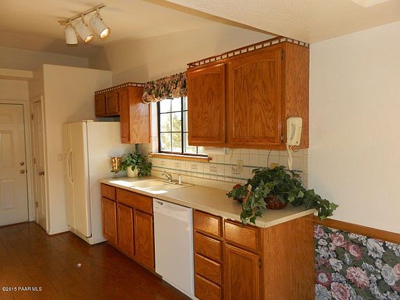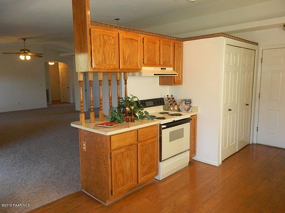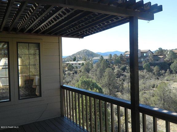 GREAT SINGLE LEVEL HOME with all around VIEWS. PRIVATE lot with a seasonal creek below that adds to the feeling of OPEN SPACE. Master Bedroom with slider to VIEW DECK and master bath with walk-in closet. Roomy Guest bedroom and bathroom with bathtub/shower - plus a DEN/OFFICE with pocket doors. Nice Kitchen with hardwood floors & bright breakfast area. Large living room with vaulted ceilings and DINING AREA and slider to VIEW DECK. New carpet, new interior paint & new dishwasher. Water Heater/Heating/Cooling Systems new in 2012. Perfect Lower level 480SF WORKSHOP. DESIRABLE LOCATION in Yavapai Hills with community pool, clubhouse and sport courts.