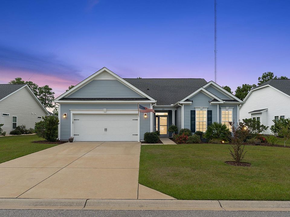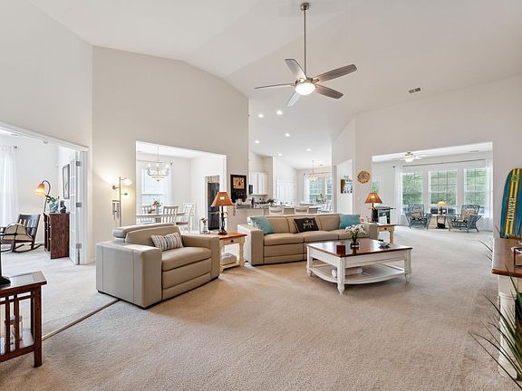 Unbeatable Value! This lovely home has the charm, quality, value and upgrades that new builds often lack. Move In Ready! All appliances and window treatments convey with sale. No added expenses, ALL is included-UNLIKE a new construction home.  Now is the time to make your move on this must-see home! More Space, Better Value than similar properties in the area. This over 2400 sq ft single easy living ranch model home offers 3 bedrooms, 2 baths plus extra bedroom (den-office-library) if needed, larger living areas, additional Carolina sunroom, & added storage space which can benefit a growing or extended family. No backyard neighbors, your home backs to only green views. Discover your dream country home designed for comfort and style. Newly built in 2019, it offers the ideal blend of luxury and practicality. Located in a quiet, friendly neighborhood with easy to reach schools, parks, shopping & quick access to major roads and highways. Lots of restaurants, live shows, golf courses and fun activities just minutes away from your new home. And... Don’t forget access to boating & fishing close by. The best of country living with convenient access to urban necessities. This Foxborough model is one of the largest ranch style homes in the Glenmoor community. Generous open concept living areas with abundant natural light/vaulted ceilings and windows galore create a welcoming and airy atmosphere in this home & has an enclosed Carolina Sunroom that opens out onto your patio. This is a perfect place to enjoy your morning coffee & perhaps an evening BBQ. Now you are all set for quiet memory making moments, or... a great fun space for entertaining family and friends. A beautiful & welcoming over 500sq ft Vaulted ceiling Great room includes large ceiling fan plus plenty of room for everyone’s style of furniture. The Large first floor owner’s bedroom includes a ceiling fan, large walk-in closet. The primary bath includes double sinks plus a water closet and separate linen closet. This home is ready & waiting for you & includes an open chef’s delight-gourmet kitchen featuring a separate breakfast nook, 42inch cabinets, large granite breakfast bar/space for 3 barstools plus++separate center granite island workspace with 7 recessed ceiling lights in the vaulted ceiling. The formal dining room adds to the convenience and ability to entertain guests and friends easily.  Also, a perfect place to enjoy sunrise morning coffee.  The laundry room includes pedestal Samsung washer/dryer, large storage closet, and an attached 462 sq ft garage includes pull down attic stairs for extra storage. Close & Easy 3-minute walk to the community pool and clubhouse. Meet your community friends & bring your family-Relax and Enjoy! Fun in the sun. Golf cart AND pet friendly, fences & long-term rentals allowed. LOW monthly HOA fees include a community center and outdoor pool.  WOW!!! Basic Cable & garbage also included in the LOW HOA monthly fee.  Ring Doorbell, electronic monitoring present at the home. Schedule your viewing today!