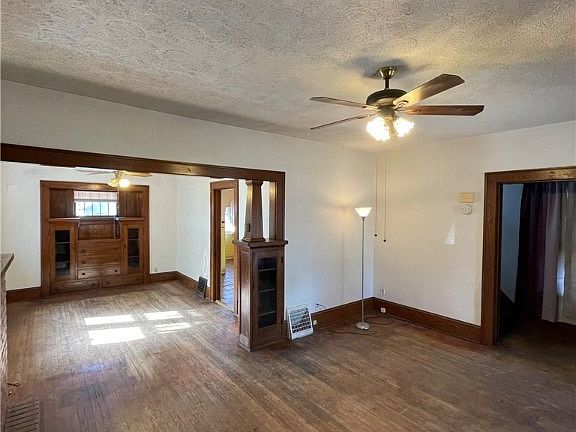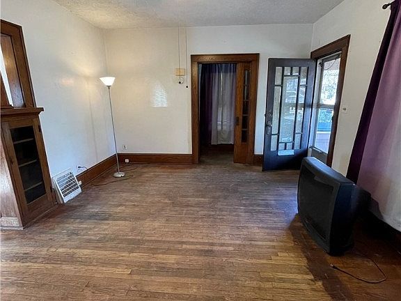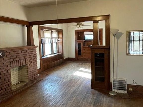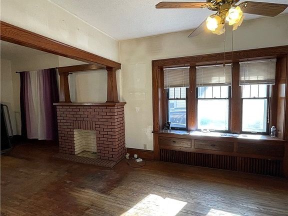 As you enter from a nice sized covered porch into this Colonial two story home (actually three), you’ll find a nice sized living room with fire place, original hardwood floors, beautiful oak trim, built in’s, and a pocket door.