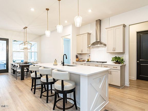 Modern farmhouse perfectly blending comfort, style & functionality. Nestled in a gated community with serene wooded views, this home offers inviting indoor & outdoor living spaces. The open-concept design is perfect for gathering, with elegant LVP flooring, a cozy gas fireplace & modern light fixtures that add warmth and character. The kitchen makes a statement with gold hardware, a large island, quartz counters, a 36'' gas cooktop, LG ThinQ oven and microwave & walk-in pantry. Upstairs, a versatile loft provides additional living space, while the owners' suite is a true retreat, boasting dual walk-in closets, a spa-like bath & a luxurious frameless glass shower with bench. A first-floor guest suite offers flexibility, while a private office with French doors is perfect for remote work. Enjoy peaceful evenings on the screened porch & expanded deck, overlooking a natural backdrop. A tankless water heater provides energy efficiency & endless hot water. The 3-car garage offers ample storage & room for extra vehicles. Sidewalk-lined streets lead to a neighborhood park & playground, creating a great space to enjoy the outdoors.