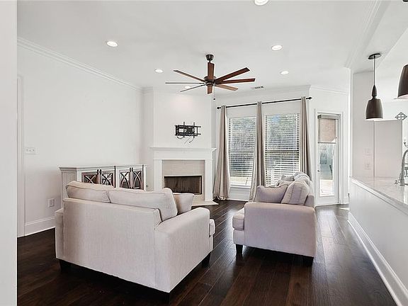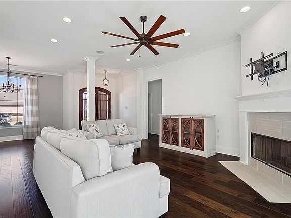 The Primary bedroom has hard wood floors and trey ceiling. The huge en suite bathroom has an enclosed glass shower, dual marble vanity, and tub. The primary walk-in closet is 9.2 x 10. An upstairs bonus loft area can be used a multitude of ways: office, game room, dressing room, etc.