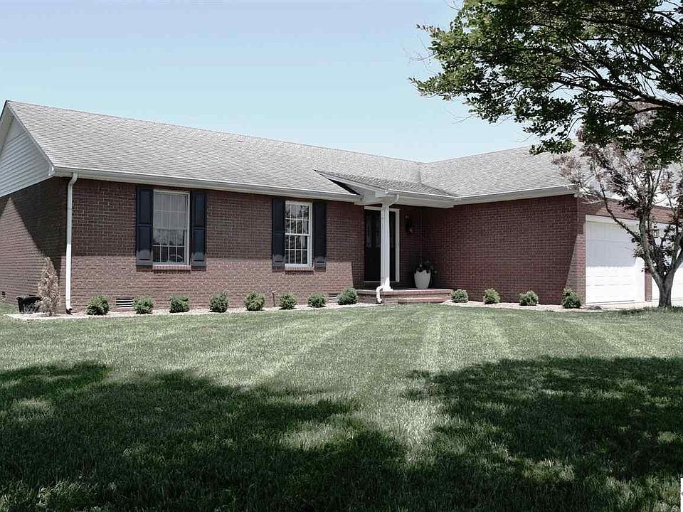 Wow, impressive 3 Bedroom brick home with new wood floors in all living areas (Living, Dining, kitchen and all bedrooms ). New entrance door from foyer to the 2 car garage that has improved steps with landing. New stainless steel upgraded appliances in the kitchen that are enhanced with added recessed lights, granite countertops and tile back splash. HVAC gas pack new in 2019. Both bathrooms have new fixtures and ceramic tile floors. The 2 atrium doors from the living room and the spacious master bedroom lead to a deck overlooking a large fenced yard . Professionally landscaped gardens with decorative rock.
