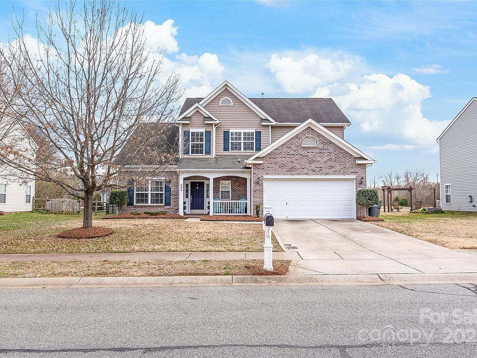 This house is terrific! 5 bedrooms and 3.5 baths in the desirable Yates Meadow subdivision. Excellent floor plan! Primary bedroom on the first floor. Flat backyard, backing up to a meadow and then trees. LVP floors on the main floor. Inviting front porch. Brick front with lots of curb appeal! The interior needs new paint and carpet, but the home is priced accordingly.