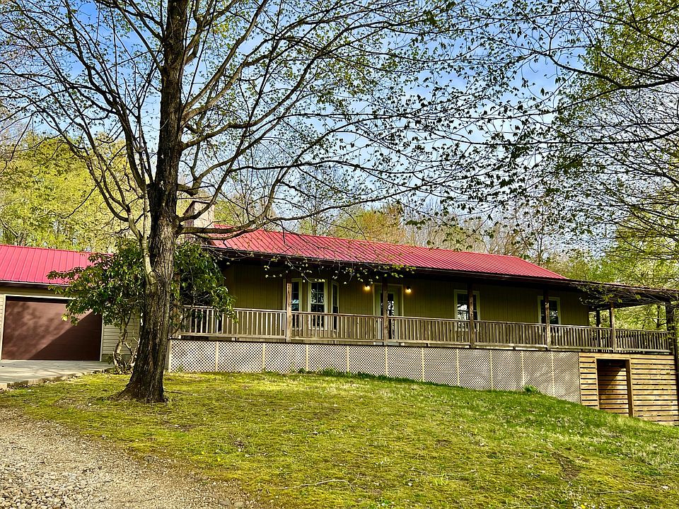 What an opportunity to own a well maintained home on a beautiful piece of property! Gorgeous views facing west. This cozy updated ranch style home with walkout basement on 30 acres consisting of ~20 acres of woods and the rest pasture/open fields. Access to Licking River in back of property.Trails lead to tree stands and hunting blind. Main floor of this ranch style home consists of 1288 sq ft with eat-in kitchen featuring Amish built maple cabinets with quartz countertops, 3 bed, full bath, and main floor laundry. Walk out basement features a great entertaining area with updated kitchenette/bar, large updated bath, a 4th bedroom, storage, and a ''secret'' room with tactical storage. A 30x40 pole building has been divided with garage area up front and the start of an apartment in back